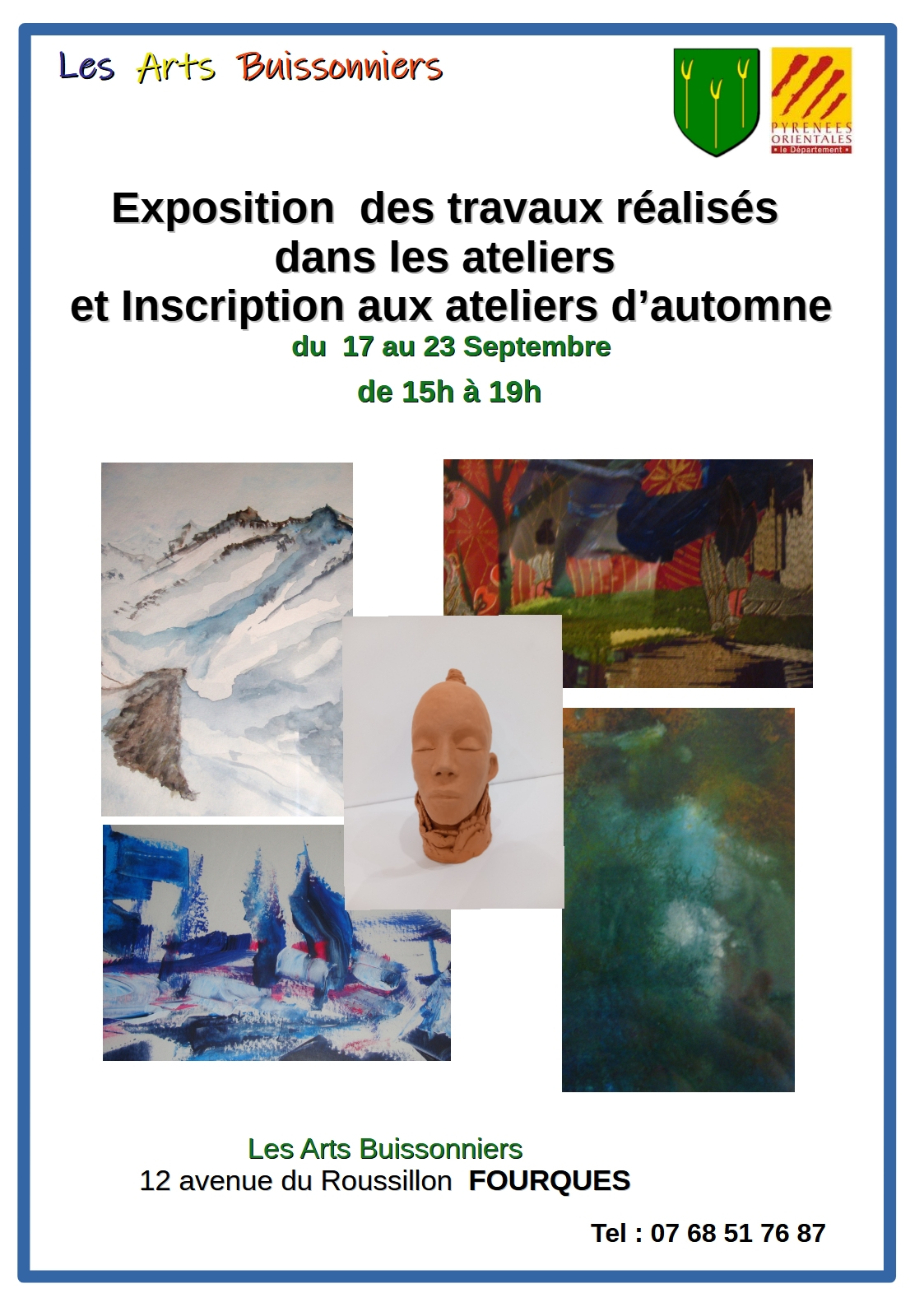 De mardi 17 septembre au dimanche 22 septembre, les travaux d'ateliers sont exposés au 12 av du Roussillon.