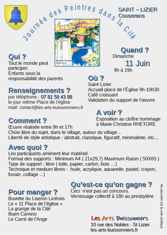 Rendez-vous à tous les artistes amateurs et professionnels sur la place de l'église entre 9h et 10h30 le 11 juin pour le départ de ce "challenge".